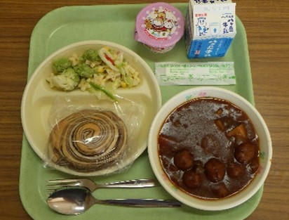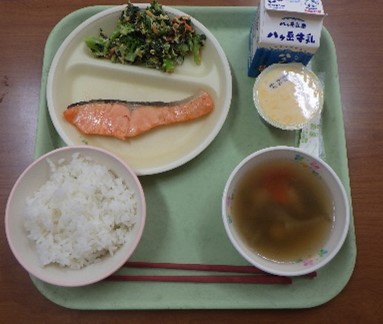 山梨県立ふじざくら支援学校 > 分掌 > 保健部 > 12月の給食 2025年12月25日カテゴリー: 分掌 保健部 12月の給食 12月22日(月)は「冬至献立」でした。当時はβカロテンやビタミンCが多く含まれるかぼちゃを食べて風邪を予防したり、ゆずを浮かべたお風呂の「ゆず湯」に浸かったりする風習があります。児童、生徒達が厳しい冬を乗り切ってくれるように願い、給食では旬の野菜を使いゆずの皮を入れたけんちん汁や、かぼちゃプリンを提供しました。 12月23日(火)は「おたのしみ献立」でした。2学期最後の給食は、あたたかいブラウンシチューや星のサラダ、クリスマスデザート等で楽しいクリスマスの雰囲気を味わうことができました。 〇12月22日(月)冬至献立 ・麦ごはん ・けんちん汁(ゆず風味) ・焼き魚(鮭) ・野菜の磯和え ・かぼちゃプリン ・牛乳 〇12月23日(火)お楽しみ献立 ・チョコクルクルパン ・ミートボールのブラウンシチュー ・星のサラダ ・クリスマスデザート(イチゴ味のプリン) ・牛乳