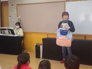 富士吉田市立図書館おはなし会「このはなさくや」に来校していただき、1月15(木)に小学部1,2,3年生、16日(金)に4,5,6年生が読み聞かせを通して交流を広げました。絵本の読み聞かせの他にエプロンシアターや手遊びなど楽しい内容をたくさん用意していただき、絵本を大好きになれる有意義な時間を過ごすことができました。